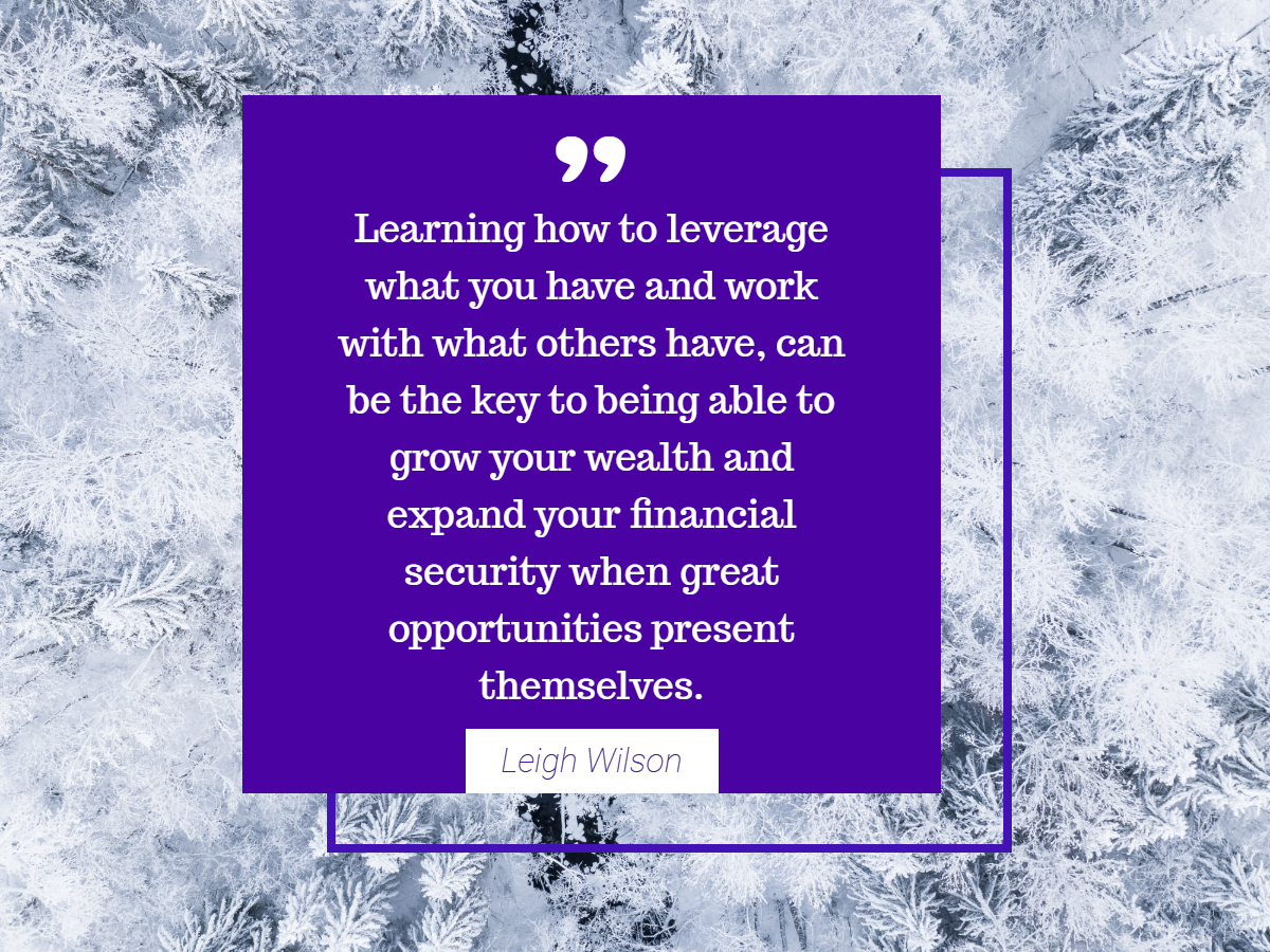 So, if that is true and I believe it is then we better know how to utilize Financial leverage…yep, learning how to leverage what you have and work with what others have, can be the key to being able to grow your wealth and expand your financial security when great opportunities present themselves, whether it be in real estate investing, the stock market, business partnerships or equity buy ins. The list is endless.